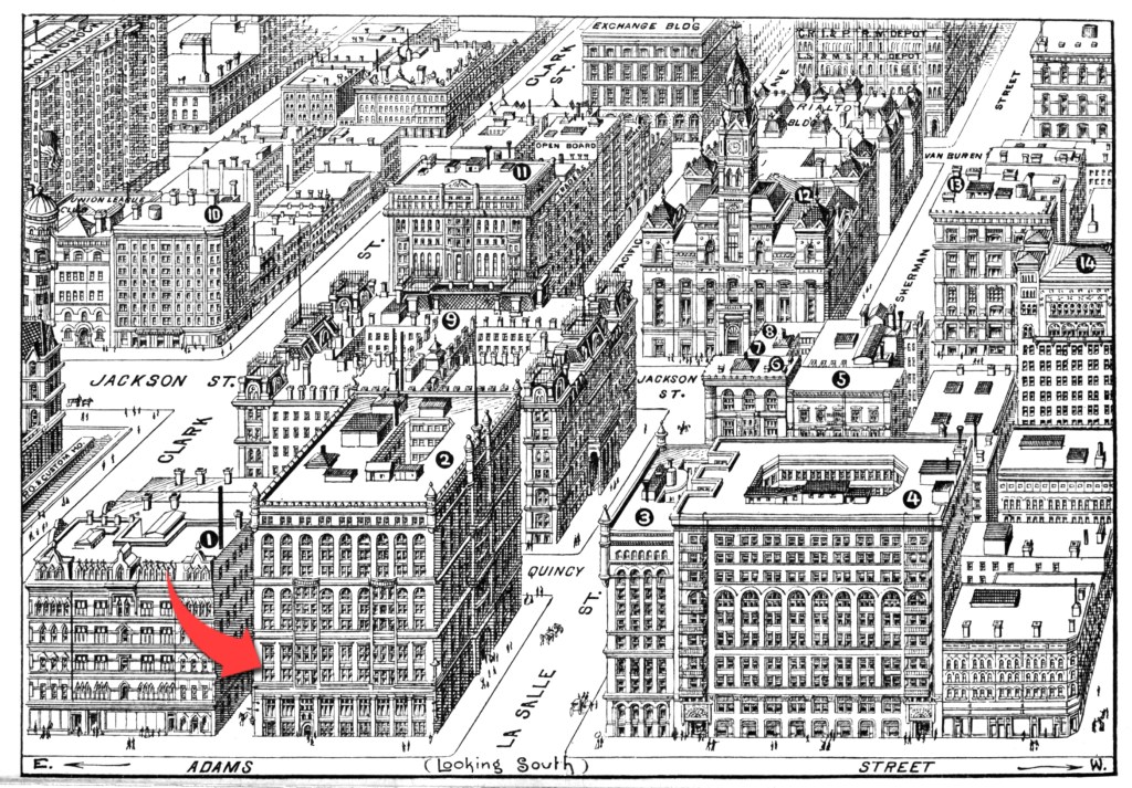 Fuller describes the Clifton as an 18-story skyscraper on LaSalle Street, “not two blocks” away from City Hall (which was then, as now, between Washington and Randolph). It was designed by an architect named Atwater for Arthur J. Ingles to be “an architectural monument that would be a credit to the town.” All four sides have “good street-fronts” according to Ingles, meaning it took up an entire block and featured decorative entrances on all sides.